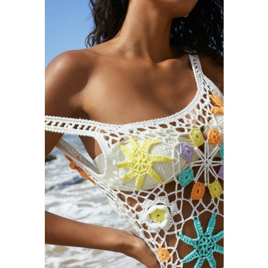 Style: Bodycon DressDesign: FloralFabric: CrochetLength: MiniNeckline: SquareSleeve Length: Strappy
