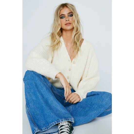 Getting cozy. Feel warm in our button down cardigan, made in high quality wool fabric, with button fastening, a flattering V neckline, and an ultra comfortable relaxed fit. Pairs well with a crop top and jeans or skirts for an elevated daytime look perfect for cold weather, whether you’re heading for a casual day out, a lunch date, or coffee catch ups. Premium Wool Oversized Button Front Cardigan High Quality Wool Fabric Button Fastening Flattering V Neckline Comfortable Relaxed Fit Model wears a size M (US size 6/UK size 10).