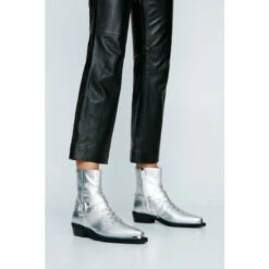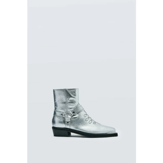 Put on your dancing shoes. These real leather western style boots style well with midi dresses, denim jeans, and mini skirts. Real Leather Harness Ankle Western Boots Real Leather Boots Leather Western Boots Leather Ankle Boots Harness Detail Embroidered Detail Inner Ankle Zip Pointed Toes