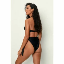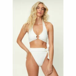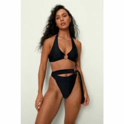Out of office on. Tie yours together with a crinkle viscose cover-up and slip-on rubber sliders. All Things Considered by Nasty Gal is our collection of sustainable pieces each thoughtfully considered and crafted with the world in mind. Recycled Two Piece Bikini Set Form Fitting Silhouette Halter Neck Bikini Top Scooped Neckline O-Ring Detailing Hook and Eye Closure High Leg Bikini Bottoms High Waisted Adjustable Belt Medium Bottom Coverage Model wears a size M (US size 6/UK size 10). This garment is READY FOR THE FUTURE. It is made with recycled polyester. Find out more about our sustainability guidelines and goals.
