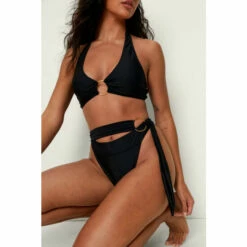 Out of office on. Tie yours together with a crinkle viscose cover-up and slip-on rubber sliders. All Things Considered by Nasty Gal is our collection of sustainable pieces each thoughtfully considered and crafted with the world in mind. Recycled Two Piece Bikini Set Form Fitting Silhouette Halter Neck Bikini Top Scooped Neckline O-Ring Detailing Hook and Eye Closure High Leg Bikini Bottoms High Waisted Adjustable Belt Medium Bottom Coverage Model wears a size M (US size 6/UK size 10). This garment is READY FOR THE FUTURE. It is made with recycled polyester. Find out more about our sustainability guidelines and goals.