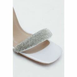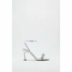 Sparkly steps. These shoes feature flared heels, open toes, and strappy design. Team with a satin mini skirt, and a chainmail cami top for a look that outshines a disco ball. Satin Diamante Strap Open Toe Heels Exposed Heels Rounded Square Toes Diamante Embellishments Adjustable Ankle Straps Rectangular Frame Buckle Punch Hole Closures Satin Material Total Heel Height: 3.5″/9cm The ultimate showpiece. Check out our full range of going out outfits, perfect for the festive season.