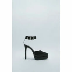 Reach new heights. Add a touch of glam to your evening looks with our satin platform heels. Satin Embellished Platform Point Toe Heels Satin Heels Pointed Toe Heels Platform Stilettos Embellished Buckle Detail Wide Ankle Strap Feature