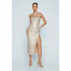Shine on. Our sequin midi dress features a lace up back, halterneck straps, a flattering square neckline, and leg split. Sequin Bandeau Lace Up Back Midi Dress Sequin Midi Dress Bandeau Midi Dress Halterneck Midi Dress Lace Up Back Shimmer Material Straight Neckline Thigh High Leg Split Model wears a size M (US size 6/UK size 10).