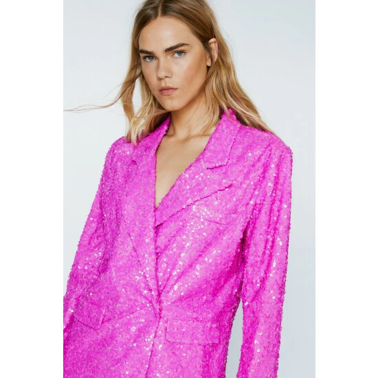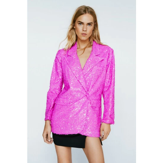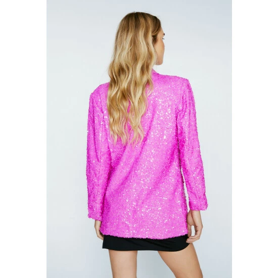 Style: BlazerFabric: SequinLength: LonglineNeckline: CollaredSleeve Length: Long Sleeve
