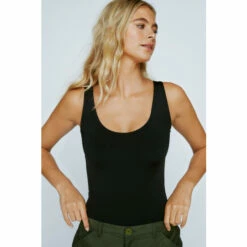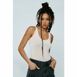 Style: BodysuitDesign: PlainFabric: JerseyNeckline: ScoopSleeve Length: Sleeveless