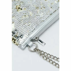 Shine on. Head seamlessly from dinner to drinks with our slouchy sequin grab bag. Slouched Sequin Grab Bag Double Sided Sequins Metallic Chain Handle Metallic Material Two Tone Sequin Detail Zip Closure