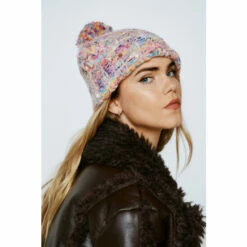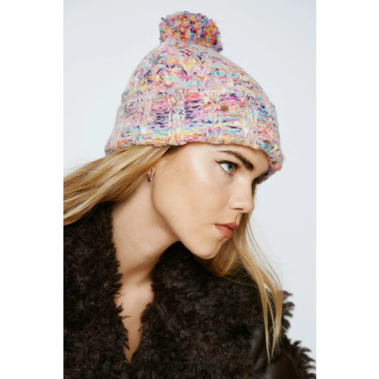 Cozy season. Keep warm in our knitted pom pom hat, with chunky knit fabric and colorful design. Space Dye Knitted Pom Pom Hat Knitted Pom Pom Hat Pom Pom Detailing Comfortable, Slouchy Design Warm Winter Hat One Size