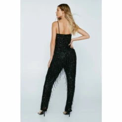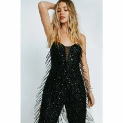 Make moves. Our hand embellished jumpsuit features fringe details, a bandeau neckline, and plunging neckline. Hand Embellished Fringe Bandeau Jumpsuit Bandeau Jumpsuit Fringe Jumpsuit Hand Embellished Jumpsuit Plunging Neckline Spaghetti Straps Fringe Detailing Model wears a size M (US size 6/UK size 10).